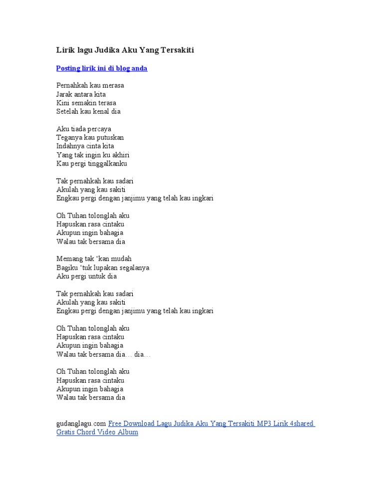 Lirik Lagu Judika Aku Yang Tersakiti Lyrics Pdf